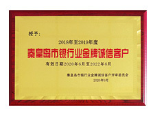 秦皇島市銀行業(yè)金牌誠(chéng)信客戶(hù)